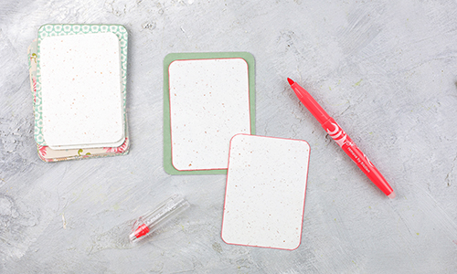 Im Alltag begegnen uns regelmäßig neue Herausforderungen. Unsere Gedanken haben großen Einfluss darauf, wie wir mit diesen Situationen umgehen und was wir aus ihnen machen. Selbstgestaltete Motivationskarten helfen dir dabei, dich deinen Herausforderungen mit einer positiven inneren Haltung gegenüberzustellen. Die FriXion Stifte sind hervorragend für solche Karten geeignet. Dank der radierbaren Tinte lassen sich nicht nur Fehler im Handumdrehen wegradieren, sondern auch alte Sprüche gegen Neue ersetzen, ohne gleich neue Karten basteln zu müssen.