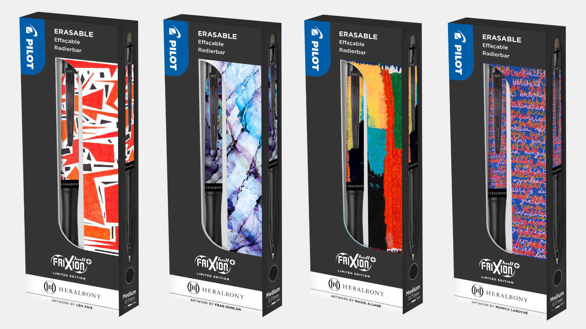 Gemeinsam bringen wir Kunst von vier europäischen Künstlerinnen und Künstlern auf den FriXion Ball+ – und machen damit sichtbar, wie inspirierend kreative Vielfalt sein kann. Die HERALBONY Edition verbindet Schreiben, Kunst und Ausdruck in einer Kollektion, die zeigt: Aus unterschiedlichen Perspektiven entstehen neue Ideen.