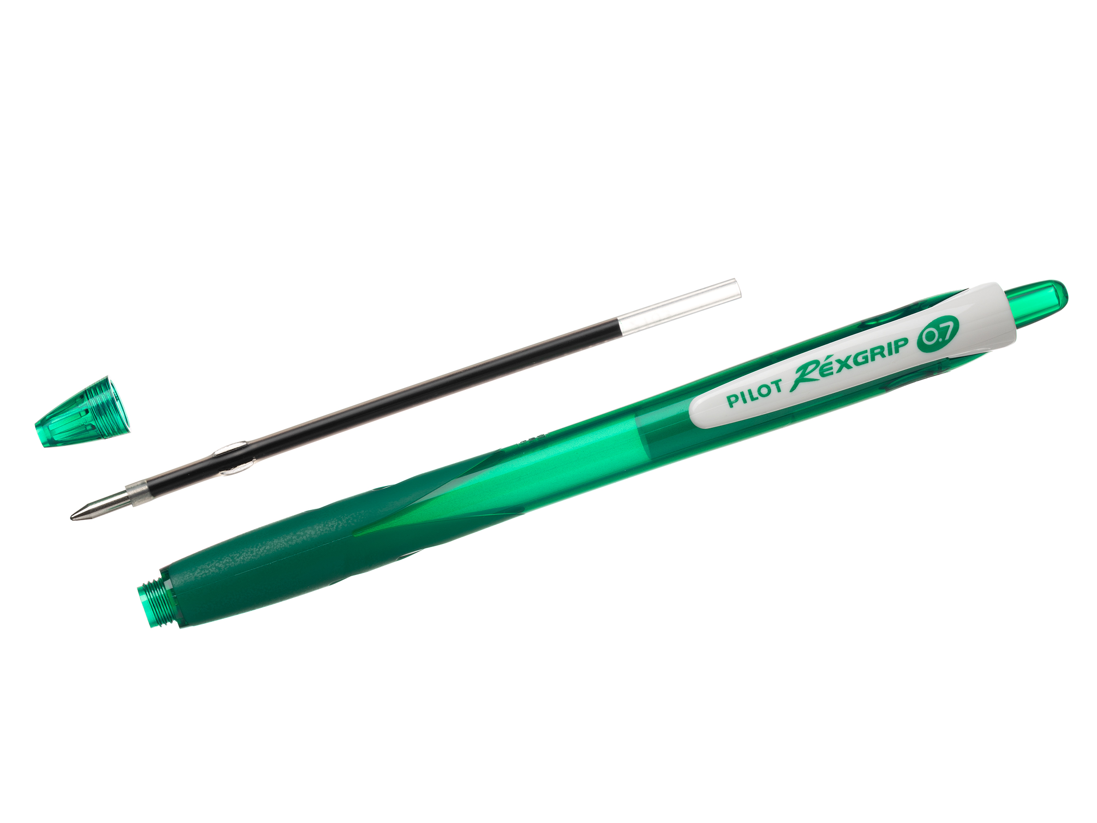 Der Réxgrip ist mit einer Druckmechanik ausgestattet, so dass die Mine per Klick einfach ein- und ausgefahren werden kann. Außerdem kann die Mine jederzeit gegen eine neue, passende Ersatzmine in den Schreibfarben Schwarz, Rot, Blau und Grün ausgewechselt werden. Erhältlich ist dieser Kugelschreiber in vier verschiedenen Strichbreiten von fein über medium und breit bis extra breit. Darüber hinaus werden bei der Produktion des Kugelschreibers mind. 75% aus recyceltem Plastik, exkl. Nachfüllungen und plastikfreien Komponenten, verwendet. Dieser Recyclinganteil entspricht 72% des gesamten Produktgewichts ohne Verpackung. Zusammen mit einem dreimaligen Minenwechsel führt dies zu einer verbesserten CO₂-Bilanz von -89%, verglichen zur Produktion ohne Recyclingmaterial sowie dem Kauf der entsprechenden Menge neuer Kugelschreiber. Die Schreibfarben Schwarz, Rot und Blau des Réxgrip sind mit dem österreichischen Umweltzeichen zertifiziert. Zudem sind alle Schreibfarben dokumentenecht und eignen sich somit auch zum Unterschreiben von offiziellen Dokumenten.
