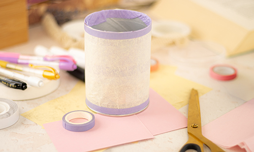 Tipp: Damit es noch schöner aussieht, beklebe den oberen und unteren Rand mit einem farblich passenden Washitape. Das gibt der Dose einen schönen Rahmen und deckt gleichzeitig die Ränder sauber ab.